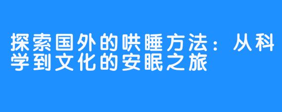 探索国外的哄睡方法:从科学到文化的安眠之旅